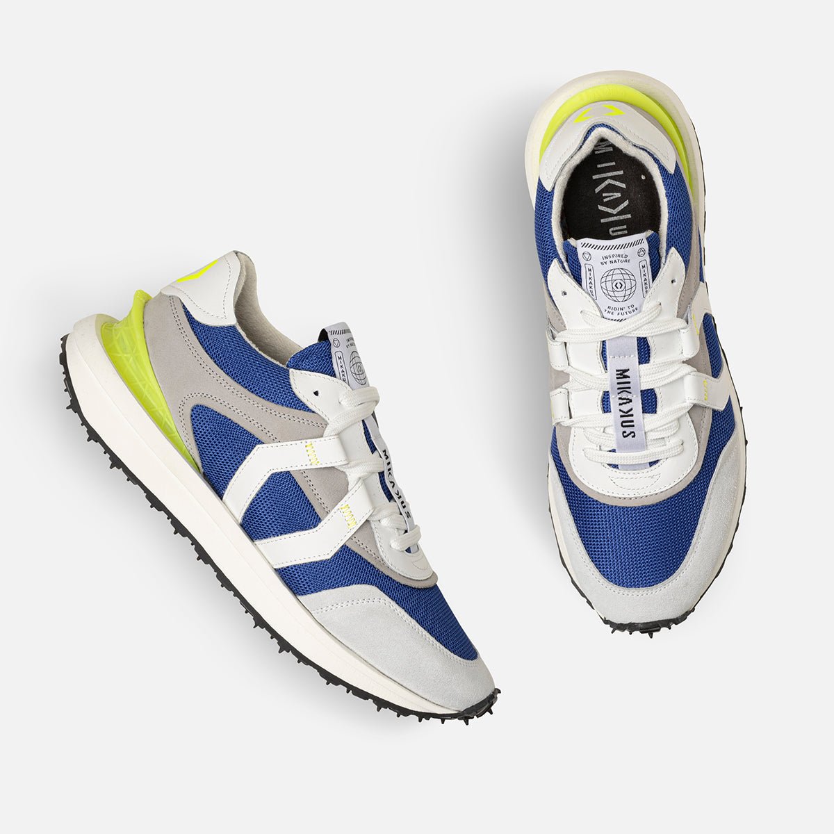 Con el modelo clásico 018 Fresh, inspirado en los primeros chuts de fútbol moderno de los años 70, nacen las Mikakus for Capitten, unas sneakers cápsula que inspiran sus tonalidades futuristas en colores flúor amarillas y azules para representar el futuro esperanzador que tiene como objetivo la marca futbolística: crear grandes jugadores, pero también mejores personas.